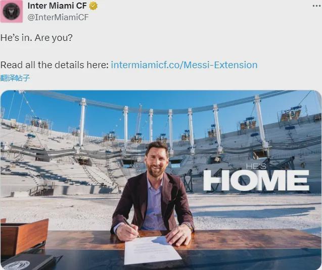 官方:迈阿密国际宣布和梅西续约到了2028年(至当赛季MLS结束,即12月),新的3年合同。